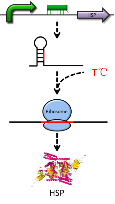 Most of gene expression responding to temperature shock measure not the temperature itself but the consequences of temperature-induced damage. Those reaction are effected by temperature indirectly. However, RNA thermometers response to temperature immediately, precisely, and controllably. So using RNA thermometers to control our heat shock proteins expression is a good choice. The RNA thermometers can be available included two types, the natural RNATS and the synthetic RNATS.