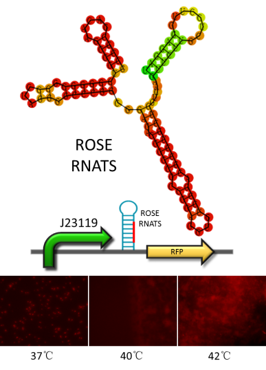 ROSE RNATS were found in numerous alphaproteobacteria and gammaproteobacteria. All known ROSE elements control the expression of small heat shock genes. ROSE-type structures are composed of two, three or four individual hairpins. The 5ʹ-most hairpins remain stable under heat shock conditions, but the 3ʹ-most hairpin that pairs with the SD sequence is only stable at low temperatures. Temperature-induced local melting in this hairpin exposes the SD sequence, facilitating ribosome binding. The SD region is occluded at 30 °C, partial melting occurs at 37 °C, whereas an increase to 42 °C facilitates the mRNA–ribosome interaction owing to full liberation of the SD and AUG start codon. This type feeds our needs. It may not initiate translation at a certain temperature completely, but the level of expression increase alone with the temperature increasing.